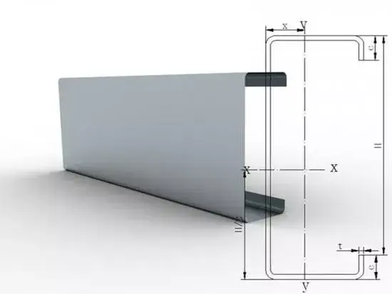 C Purlin är ett lätt stålmaterial som bearbetas till ett C-format tvärsnitt genom kallböjning. Den används främst som en sekundär lastbärande del i stålkonstruktioner, så kallade räfflor, för att stödja takpaneler och väggpaneler (såsom färgstålplåtar och sandwichpaneler), motstå vind- och snöbelastningar samt egenvikt och överföra lasterna till huvudstålramen. Dess öppna design underlättar bultfixering och rörinförande, vilket gör den till en av de mest ekonomiska och mest använda profilerna i lätta stålkonstruktioner. Den är lämplig för stålkonstruktionsprojekt som industrianläggningar, lager och lätta stålvillor.