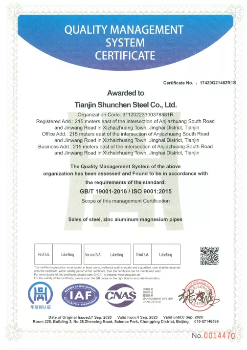 Våra galvaniserade runda rör kommer i ett brett utbud av specifikationer, med 236 olika storlekar för att möta olika behov. Våra produkter är ISO9001-certifierade och innehar ISO 9000, 3A-systemcertifieringar och EU CE-certifiering. Vi tillhandahåller även materialrapporter, certifikat för testning av zinkbeläggningstjocklek och kvalitetsinspektionsrapporter från tredje part. Att välja Shunchuns galvaniserade runda rör ger dig inte bara inköpstjänster utan även 24/7 support efter försäljning och spårning i realtid vid 18 nyckelpunkter, vilket gör din upphandling mer bekymmersfri och pålitlig.