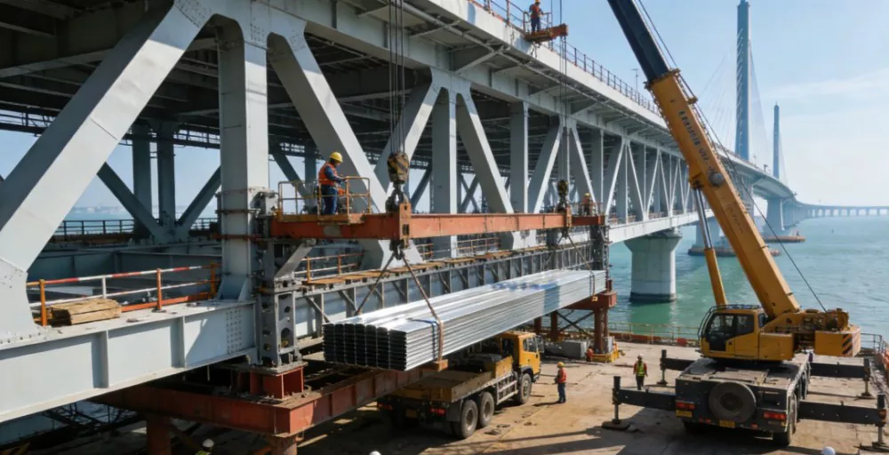 Hong Kong-Zhuhai-Macau Bridge-projektet använder i stor utsträckning varmvalsade stålband tillverkade med hjälp av en ny generation av kontrollerad rullnings- och kylteknik för brostål, inklusive rörpålar och strukturella komponenter för huvudnavigeringsbroar, totalt över 30 000 ton. Det vattenkylda varmvalsade bandstålet som används har utmärkt hållfasthet, seghet, svetsbarhet och havsvattenkorrosionsbeständighet, vilket löser problemen med eftersvetsdelaminering och otillräcklig seghet i traditionellt brostål. Detta gör den lämplig för den hårda naturliga miljön på bron över havet, vilket bidrar till projektets erkännande som ett av "världens nya sju underverk."