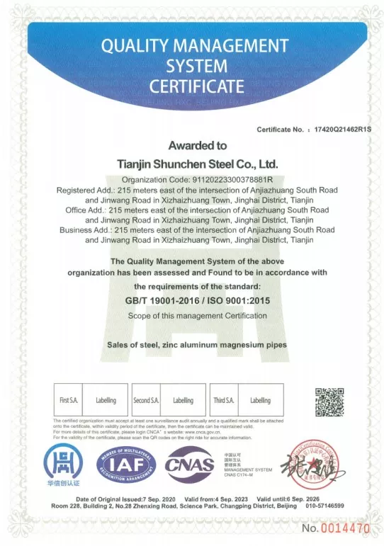 Tianjin Shunchen Industrial Company har samlat på sig över tre decenniers produktionserfarenhet inom stålindustrin. Företaget innehar ISO 9000, 3A-systemcertifieringar, såväl som EU:s CE-certifiering, och har etablerat en komplett industriell kedjelayout från galvaniseringsbearbetning till försäljning och distribution. Genom rigorösa 12-stegsprocessflöden och en omfattande inspektionsmekanism i tre nivåer har företaget uppnått ett rekord på noll årliga kvalitets- och säkerhetsolyckor och nollordningsstandarder under 12 på varandra följande år. Shunchen Industrial upprätthåller ett helårsförzinkat stålfläcklager på över 20 000 ton, vilket bildar en storskalig stormarknad i galvaniserat stål som integrerar lager och distribution. Lagret täcker en yta på 10 000 kvadratmeter, vilket ger ett gediget stöd för den integrerade produktions- och försäljningstjänsten.
